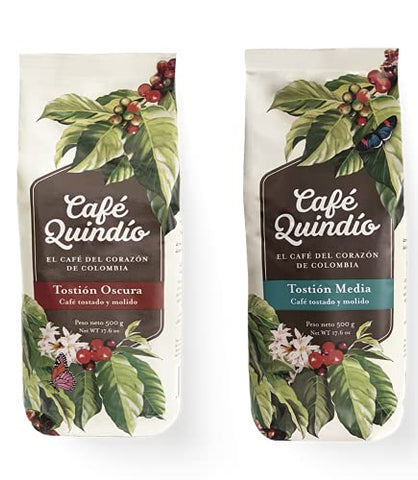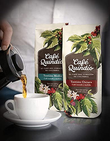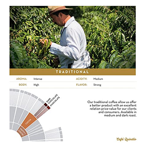 Cafe Quindio Traditional Dark Roast Ground Coffee. The Coffee from The Heart of Colombia, 100% Colombian Arabica Coffee, Artisanal Cultivation Single Estate Coffee. (500g/17.6 oz)